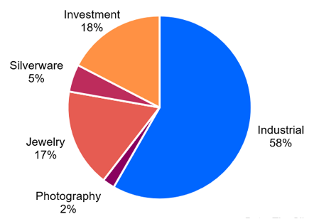 Silver demand by source, according to the Silver Institute 2024